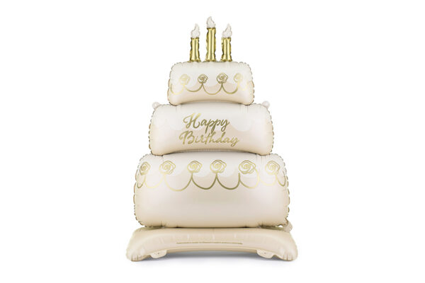 Фолиев балон „Cake“, бежово и златисто. Размери преди надуване: приблизително 76,5 x 144 см (30,1 x 56,7″), размери след надуване: приблизително 70 x 100 см (27,6 x 39,4″). Надува се с въздух. Комплектът включва сламка.