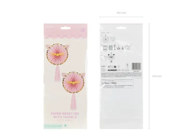 Kitty Декоративни розетки, изработени от хартия с уши и пискюли, цветова смес, диаметърът след сгъване е около 26