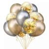 Малък и голям сет / 15бр или 30бр / латексови балони в три модела пълни с хелий. Комплектът се предлага в два варианта: малък /5бр балони с конфети, 5бр сребърни балони и 5бр златни балони / и голям /10бр балони с конфети, 10бр сребърни балони и 10бр златни балони/