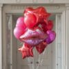 Красив комплект от балони сърца, звезди и целувка надути с хелий.