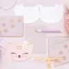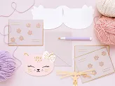 Покани във формата на Kitty в розов цвят с цветен принт, приблизително 13 x 10 см. Комплектът включва пликове.
