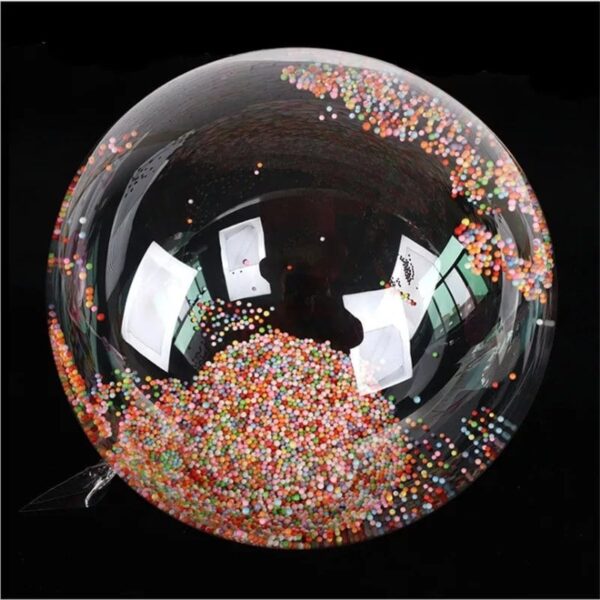 Прозрачен PVC балон с пълнеж от стеоропорени топчета в различни цветове с хелий. При поръчка очаквайте да се свържем с вас за уточнение на цвета на панделките, адреса и часа за доставка. Цената е за 1 брой балон надут с хелий. Моля изберете желания от вас цвят.